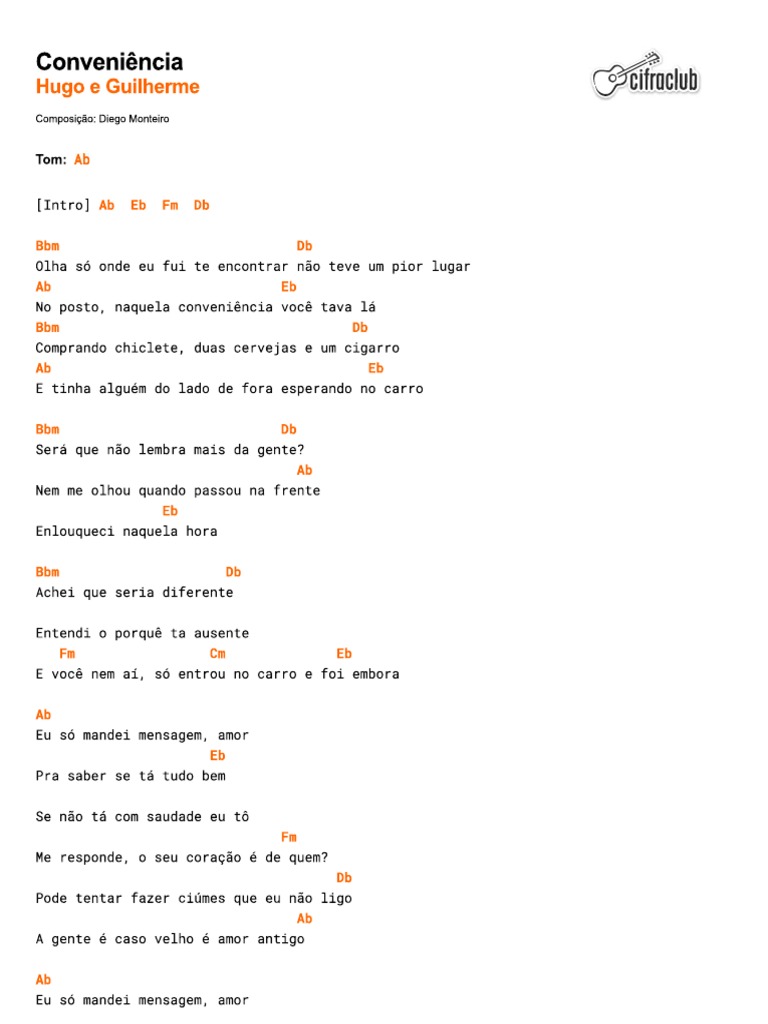 Cifra Club Hugo E Guilherme Conveniencia - A musica outra vida de armandinho assim como todas as outras encontradas aqui no letraz, sao de propriedade de seus respectivos autores e sao divulgadas somente para fins educacionais, sendo vedada sua reproducao e copias atraves de qualquer outros meios.