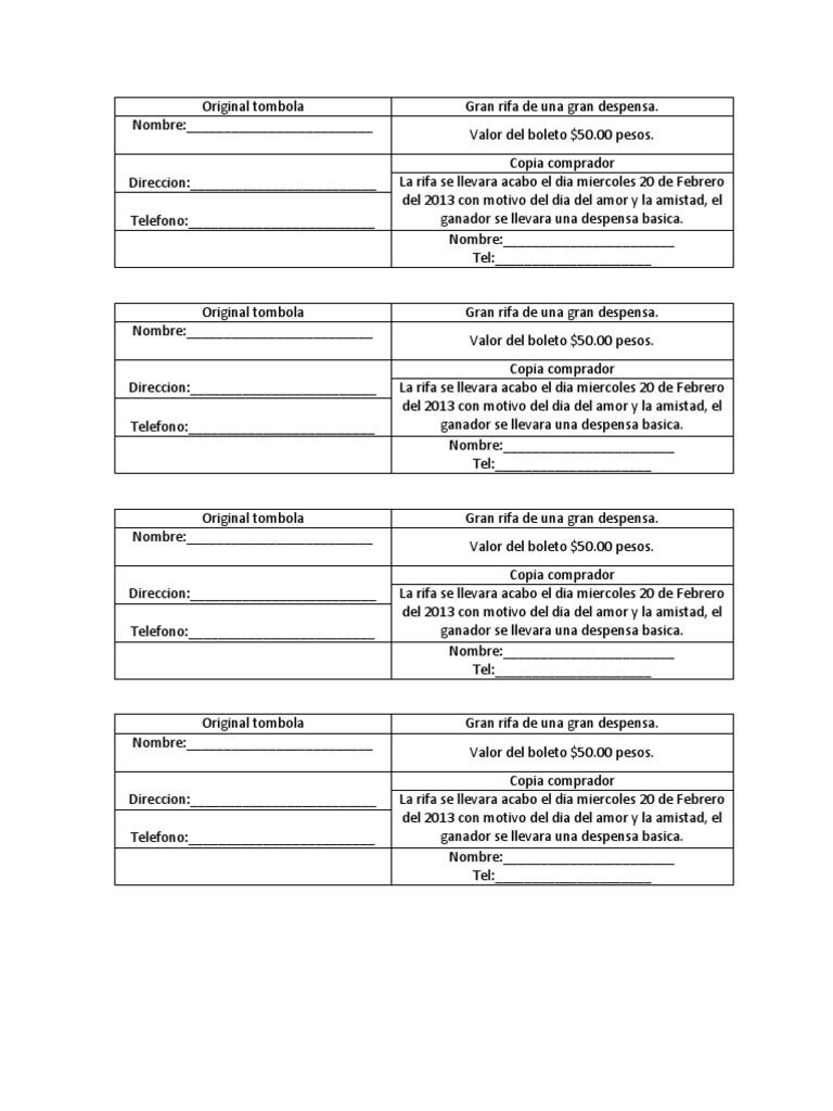 Boleto Daaniela Amayaa - Si necesitas saber como hacer una rifa, ya sea usando microsoft word u otros metodos, estas de enhorabuena porque gracias a este articulo descubriras varios metodos con los cuales podras hacer las.